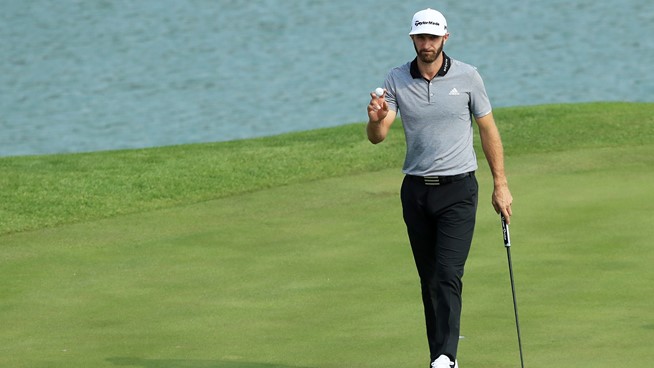 DJ hefir spilað á samtals 13 undir pari, 131 höggi (68 63) og á 1 högg á næsta keppenda, sem er Brooks Koepka, sem samtals hefir spilað á 12 undir pari, 132 höggum (64 68).
