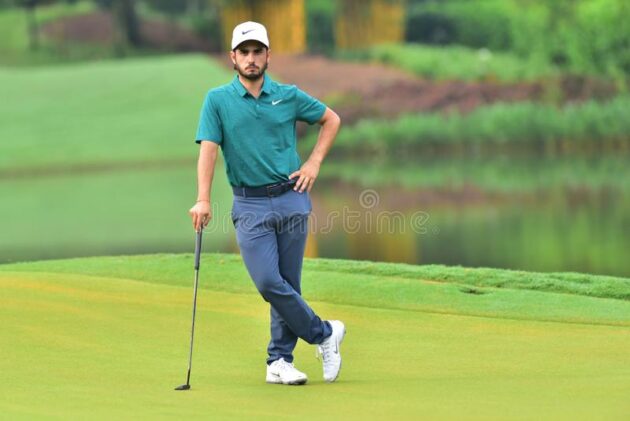 Abraham Ancer. Hann vann Collin Morikawa risastórt 7&6. Sjá má „næstumþvíás“ Ancer í þeirri viðureign með því að SMELLA HÉR